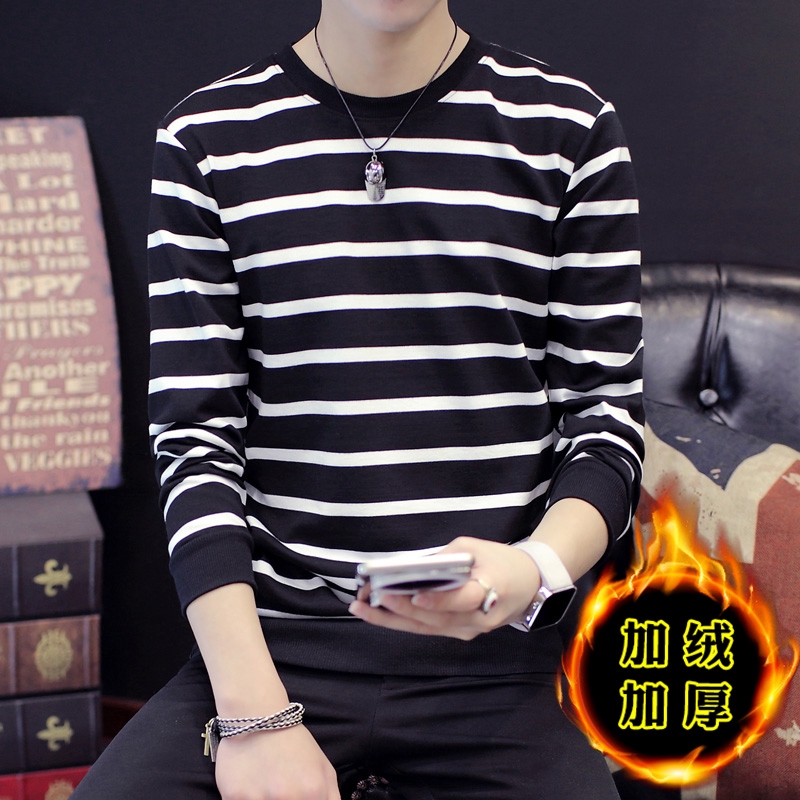 Kaos pria kaos long stripe belang kaos tangan panjang hitam putih gaya cowok keren .